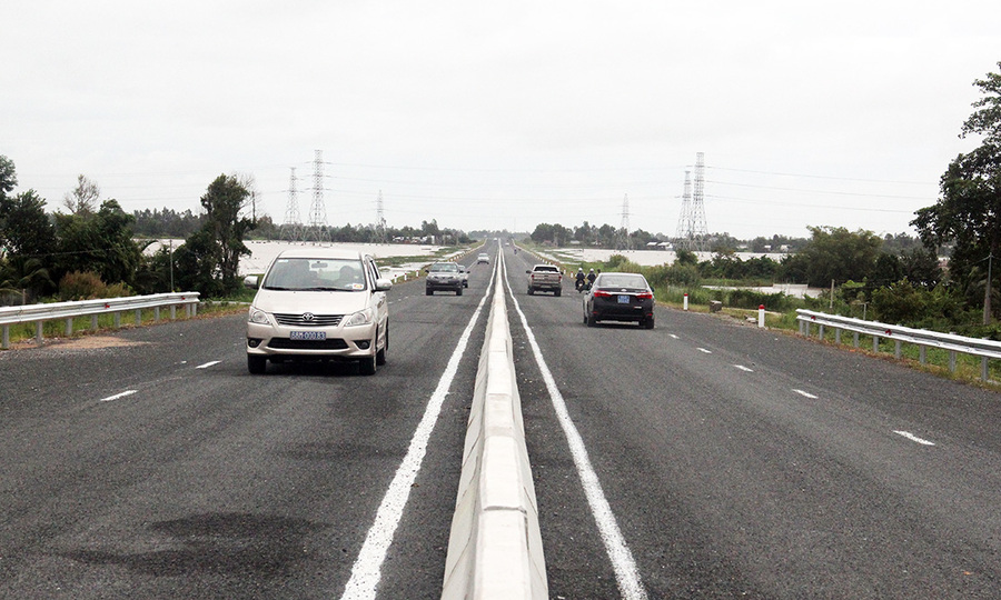 Chiều 15-10, tại huyện Châu Thành, Bộ GTVT đã tổ chức lễ thông xe kỹ thuật tuyến cao tốc này. Thống đốc Cửu Long của Bộ GTVT cho biết, dự án đã cơ bản hoàn thành các nội dung chính. Đơn vị thi công đã hoàn thiện phần còn lại của hệ thống an toàn đường bộ như cột, pa-nô, vách ngăn, tường rào, 5 cầu vượt … tuyến đường có thể chính thức thông xe theo kế hoạch. Ảnh: Cửu Long.